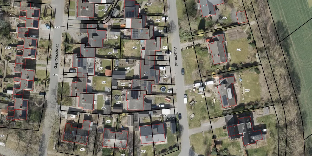 Het perceel waarop Asterstraat 7 staat heeft een oppervlakte van 470 m². Dit is een groot perceel. De perceeloppervlakte wordt geregistreerd door het Kadaster. Gedetailleerde informatie over de maten van dit perceel kunt u vinden in het rapport Kadastrale kaart met maatvoering van Asterstraat 7.