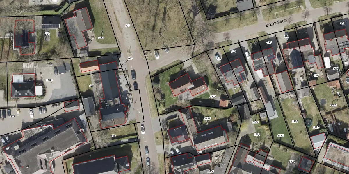 Boshoflaan 4 is gelegen op kadastraal perceel ODN00K1322. Deze kadastrale aanduiding is uniek en wordt gebruikt door het Kadaster om eigendomsrechten en andere zakelijke rechten vast te leggen. Het perceel maakt onderdeel uit van de kadastrale gemeente Odoorn.