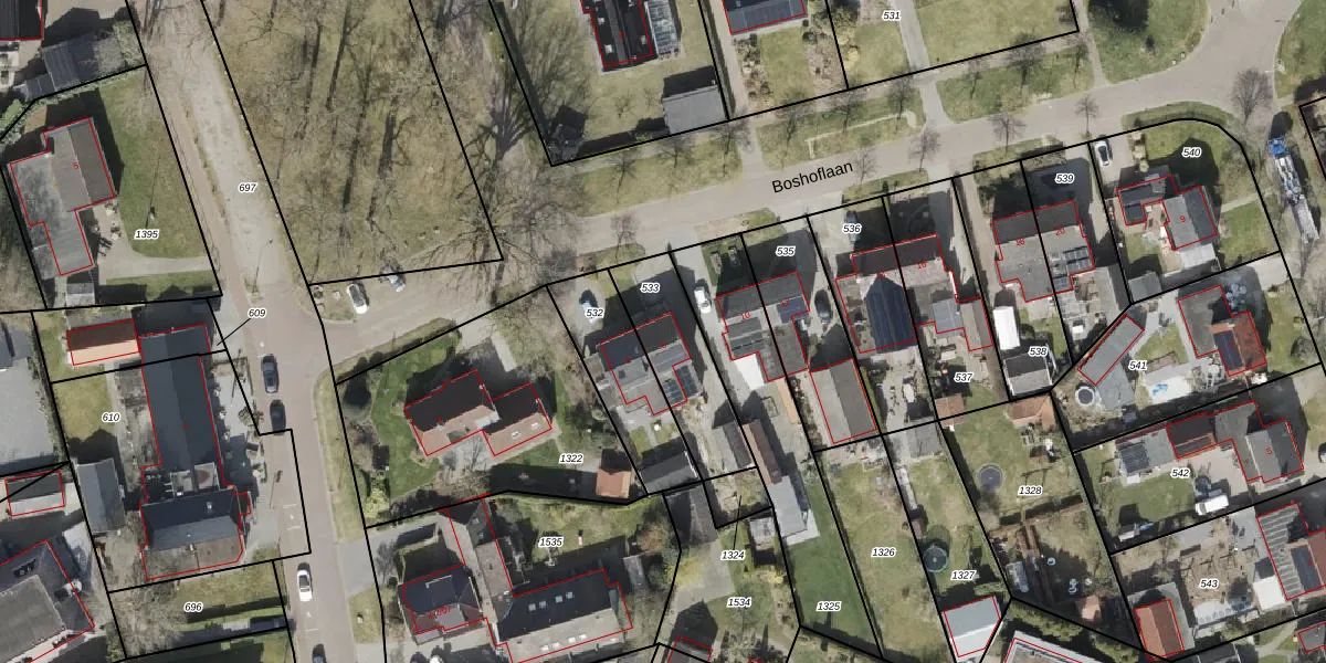 Boshoflaan 8 is gelegen op kadastraal perceel ODN00K533. Deze kadastrale aanduiding is uniek en wordt gebruikt door het Kadaster om eigendomsrechten en andere zakelijke rechten vast te leggen. Het perceel maakt onderdeel uit van de kadastrale gemeente Odoorn.