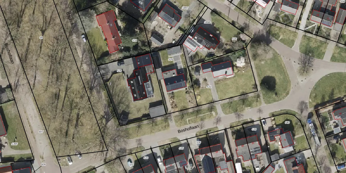 Boshoflaan 9 is gelegen op kadastraal perceel ODN00K529. Deze kadastrale aanduiding is uniek en wordt gebruikt door het Kadaster om eigendomsrechten en andere zakelijke rechten vast te leggen. Het perceel maakt onderdeel uit van de kadastrale gemeente Odoorn.