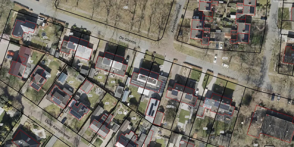 Het perceel waarop De Goorns 14 staat heeft een oppervlakte van 493 m². Dit is een groot perceel. De perceeloppervlakte wordt geregistreerd door het Kadaster. Gedetailleerde informatie over de maten van dit perceel kunt u vinden in het rapport Kadastrale kaart met maatvoering van De Goorns 14.