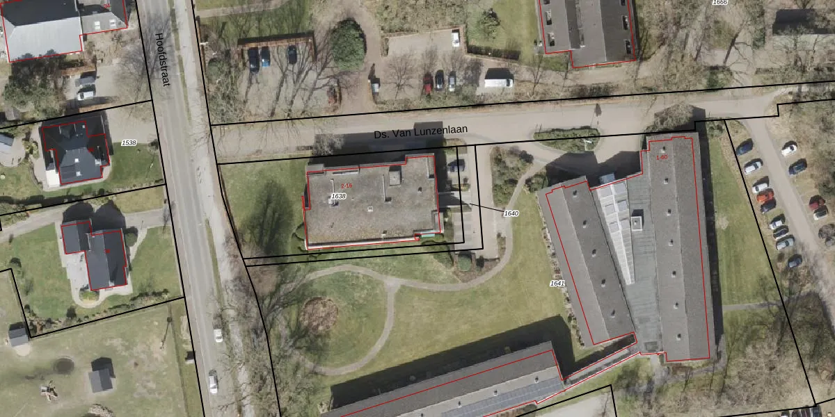 Ds. Van Lunzenlaan 16 is gelegen op kadastraal perceel ODN00K1638. Deze kadastrale aanduiding is uniek en wordt gebruikt door het Kadaster om eigendomsrechten en andere zakelijke rechten vast te leggen. Het perceel maakt onderdeel uit van de kadastrale gemeente Odoorn.