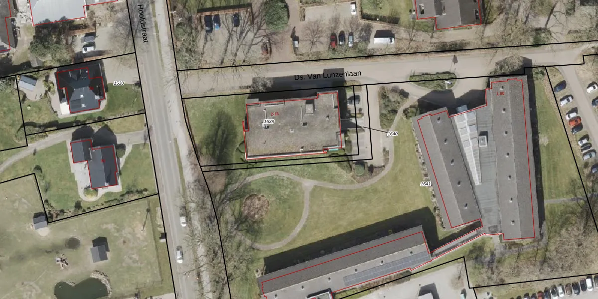 Ds. Van Lunzenlaan 6 is gelegen op kadastraal perceel ODN00K1638. Deze kadastrale aanduiding is uniek en wordt gebruikt door het Kadaster om eigendomsrechten en andere zakelijke rechten vast te leggen. Het perceel maakt onderdeel uit van de kadastrale gemeente Odoorn.