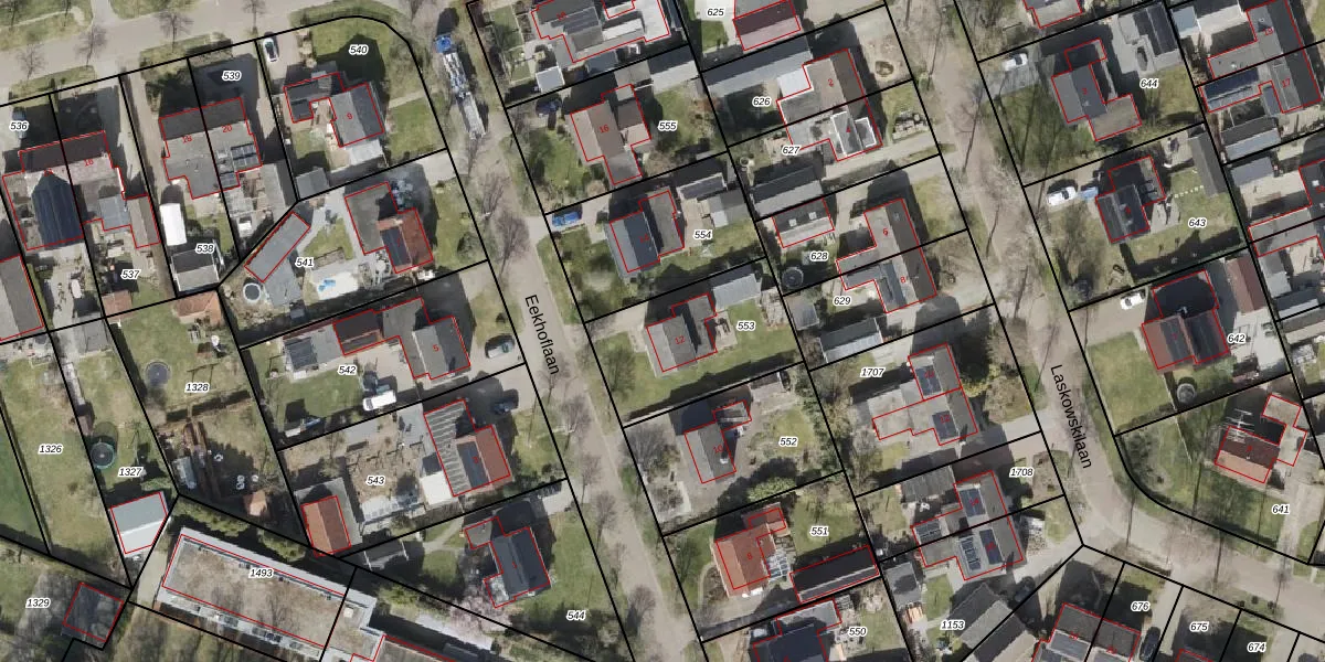 Het perceel waarop Eekhoflaan 12 staat heeft een oppervlakte van 505 m². Dit is een groot perceel. De perceeloppervlakte wordt geregistreerd door het Kadaster. Gedetailleerde informatie over de maten van dit perceel kunt u vinden in het rapport Kadastrale kaart met maatvoering van Eekhoflaan 12.
