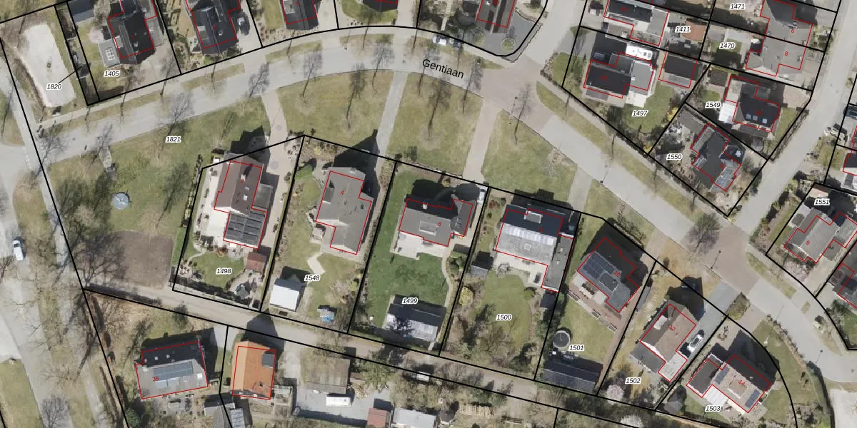 Gentiaan 6 is gelegen op kadastraal perceel ODN00K1499. Deze kadastrale aanduiding is uniek en wordt gebruikt door het Kadaster om eigendomsrechten en andere zakelijke rechten vast te leggen. Het perceel maakt onderdeel uit van de kadastrale gemeente Odoorn.