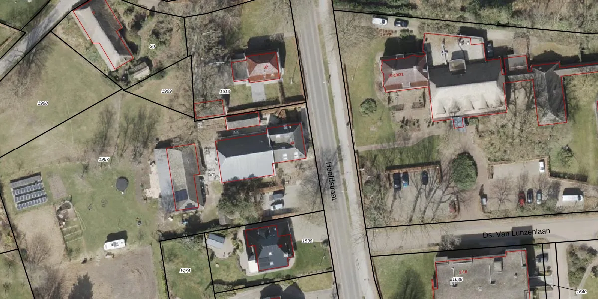 Het perceel waarop Hoofdstraat 34 staat heeft een oppervlakte van 5416 m². Dit is een zeer groot perceel. De perceeloppervlakte wordt geregistreerd door het Kadaster. Gedetailleerde informatie over de maten van dit perceel kunt u vinden in het rapport Kadastrale kaart met maatvoering van Hoofdstraat 34.