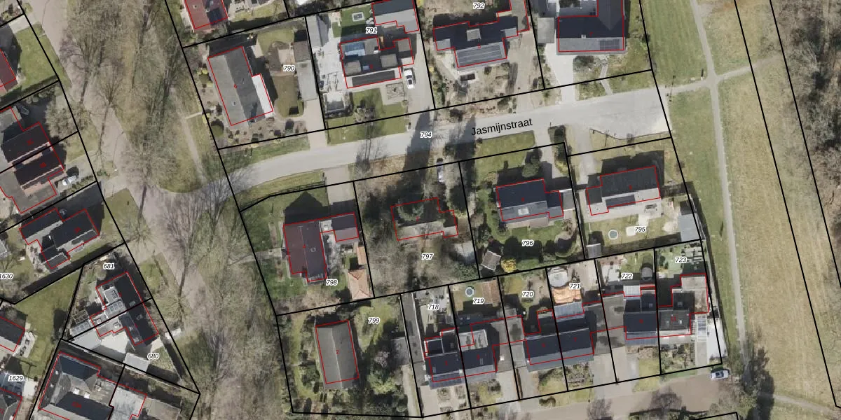 Het perceel waarop Jasmijnstraat 2 staat heeft een oppervlakte van 725 m². Dit is een groot perceel. De perceeloppervlakte wordt geregistreerd door het Kadaster. Gedetailleerde informatie over de maten van dit perceel kunt u vinden in het rapport Kadastrale kaart met maatvoering van Jasmijnstraat 2.