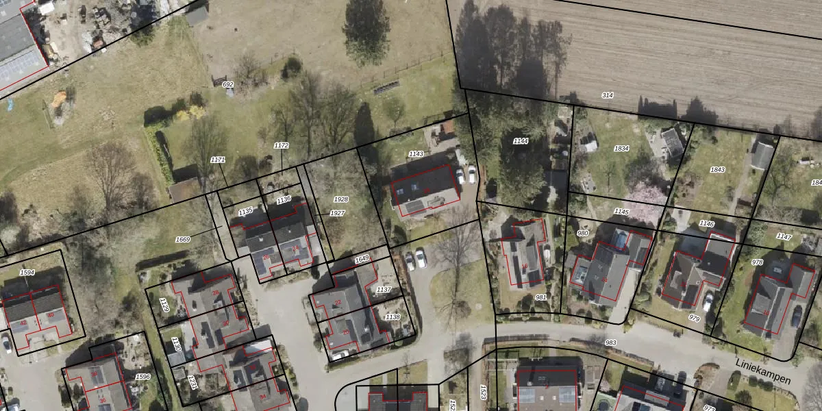 Het perceel waarop Liniekampen 18 staat heeft een oppervlakte van 673 m². Dit is een groot perceel. De perceeloppervlakte wordt geregistreerd door het Kadaster. Gedetailleerde informatie over de maten van dit perceel kunt u vinden in het rapport Kadastrale kaart met maatvoering van Liniekampen 18.