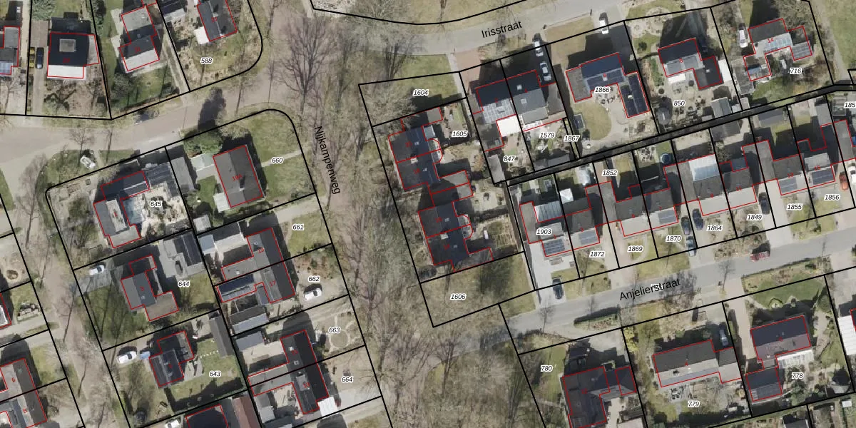 Het perceel waarop Nijkampenweg 16 staat heeft een oppervlakte van 936 m². Dit is een groot perceel. De perceeloppervlakte wordt geregistreerd door het Kadaster. Gedetailleerde informatie over de maten van dit perceel kunt u vinden in het rapport Kadastrale kaart met maatvoering van Nijkampenweg 16.