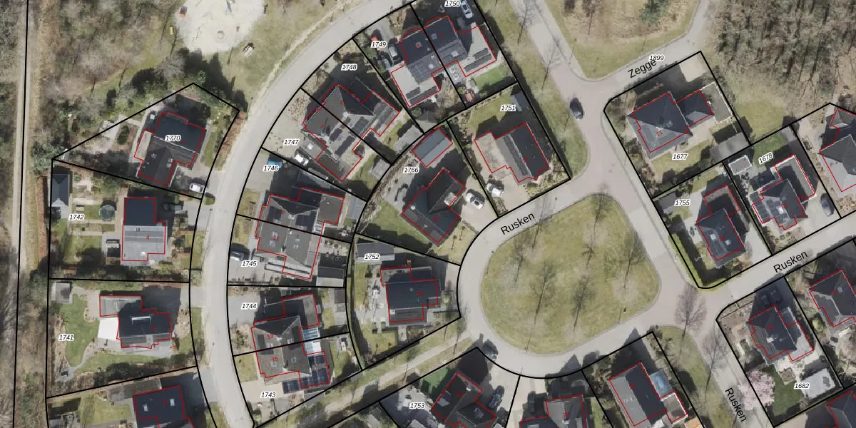 Het perceel waarop Rusken 16 staat heeft een oppervlakte van 641 m². Dit is een groot perceel. De perceeloppervlakte wordt geregistreerd door het Kadaster. Gedetailleerde informatie over de maten van dit perceel kunt u vinden in het rapport Kadastrale kaart met maatvoering van Rusken 16.