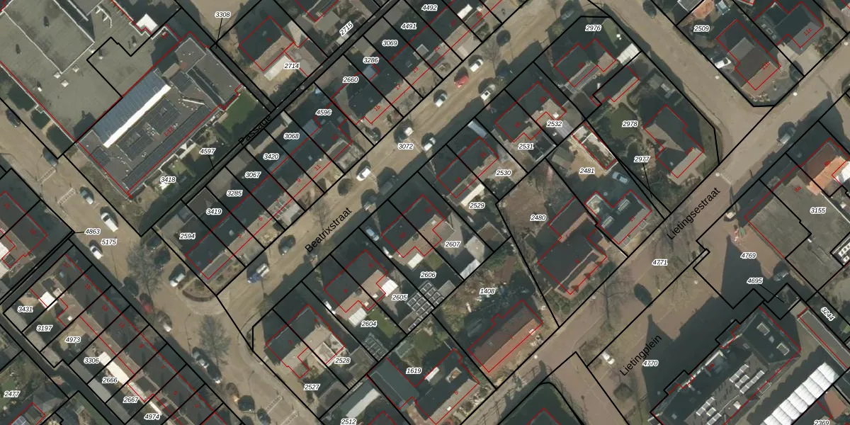 Het perceel waarop Beatrixstraat 12 staat heeft een oppervlakte van 245 m². Dit is een middelgroot perceel. De perceeloppervlakte wordt geregistreerd door het Kadaster. Gedetailleerde informatie over de maten van dit perceel kunt u vinden in het rapport Kadastrale kaart met maatvoering van Beatrixstraat 12.