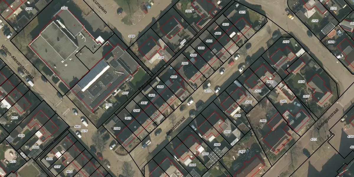 Het perceel waarop Beatrixstraat 13 staat heeft een oppervlakte van 200 m². Dit is een middelgroot perceel. De perceeloppervlakte wordt geregistreerd door het Kadaster. Gedetailleerde informatie over de maten van dit perceel kunt u vinden in het rapport Kadastrale kaart met maatvoering van Beatrixstraat 13.