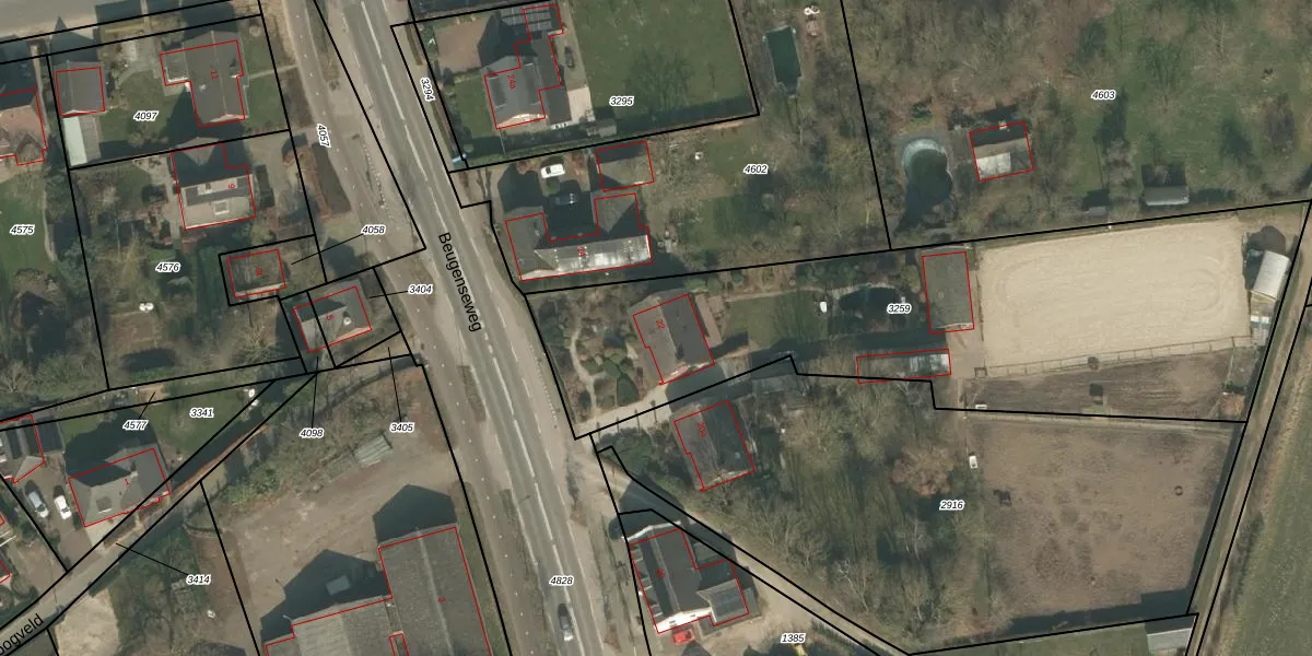 Het perceel waarop Beugenseweg 22 staat heeft een oppervlakte van 2545 m². Dit is een zeer groot perceel. De perceeloppervlakte wordt geregistreerd door het Kadaster. Gedetailleerde informatie over de maten van dit perceel kunt u vinden in het rapport Kadastrale kaart met maatvoering van Beugenseweg 22.