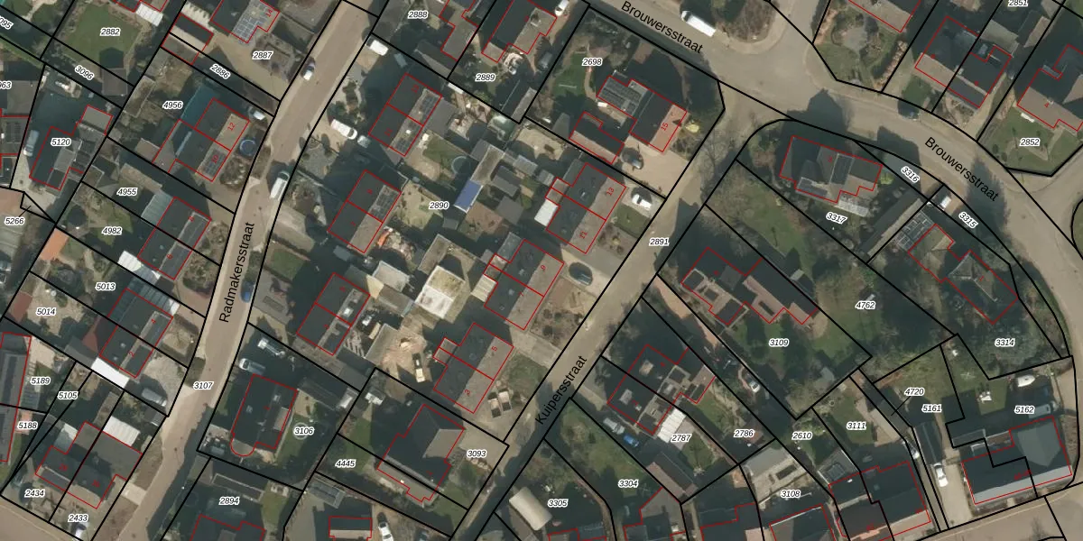 Kuipersstraat 9 is gelegen op kadastraal perceel BMR00Z2890. Deze kadastrale aanduiding is uniek en wordt gebruikt door het Kadaster om eigendomsrechten en andere zakelijke rechten vast te leggen. Het perceel maakt onderdeel uit van de kadastrale gemeente Boxmeer.