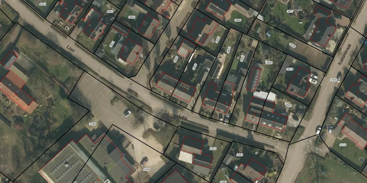 Het perceel waarop Looi 16 staat heeft een oppervlakte van 430 m². Dit is een groot perceel. De perceeloppervlakte wordt geregistreerd door het Kadaster. Gedetailleerde informatie over de maten van dit perceel kunt u vinden in het rapport Kadastrale kaart met maatvoering van Looi 16.