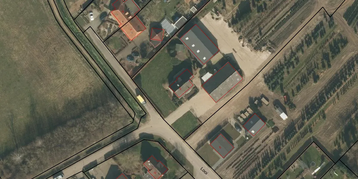 Het perceel waarop Looi 2-a staat heeft een oppervlakte van 3,6 ha. Dit is een zeer groot perceel. De perceeloppervlakte wordt geregistreerd door het Kadaster. Gedetailleerde informatie over de maten van dit perceel kunt u vinden in het rapport Kadastrale kaart met maatvoering van Looi 2-a.