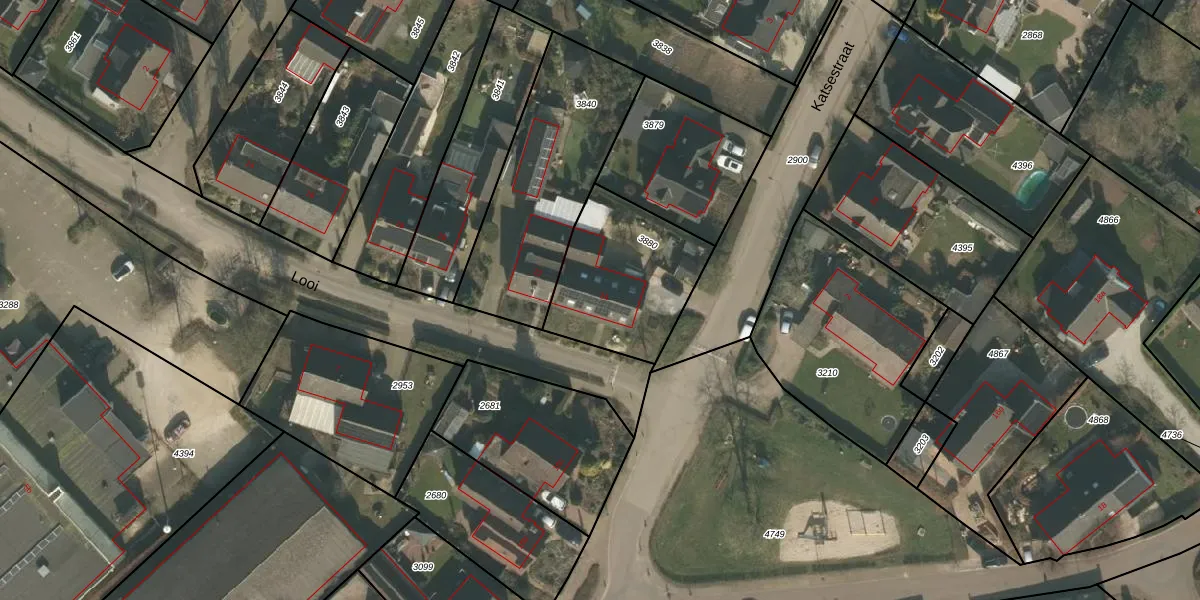 Het perceel waarop Looi 24 staat heeft een oppervlakte van 515 m². Dit is een groot perceel. De perceeloppervlakte wordt geregistreerd door het Kadaster. Gedetailleerde informatie over de maten van dit perceel kunt u vinden in het rapport Kadastrale kaart met maatvoering van Looi 24.