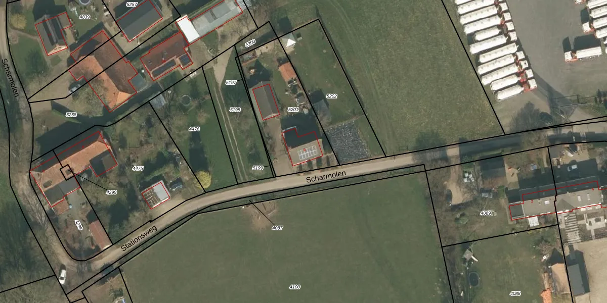 Scharmolen 6 is gelegen op kadastraal perceel BMR00Z5201. Deze kadastrale aanduiding is uniek en wordt gebruikt door het Kadaster om eigendomsrechten en andere zakelijke rechten vast te leggen. Het perceel maakt onderdeel uit van de kadastrale gemeente Boxmeer.