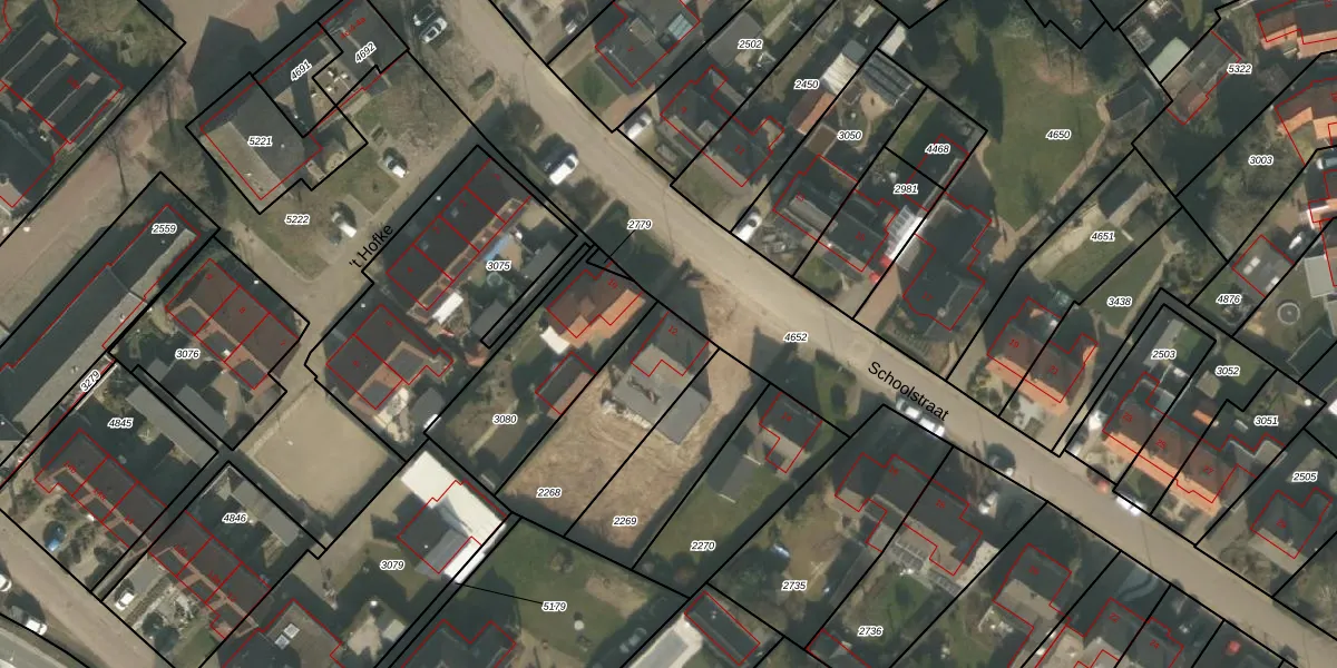 Het perceel waarop Schoolstraat 12 staat heeft een oppervlakte van 445 m². Dit is een groot perceel. De perceeloppervlakte wordt geregistreerd door het Kadaster. Gedetailleerde informatie over de maten van dit perceel kunt u vinden in het rapport Kadastrale kaart met maatvoering van Schoolstraat 12.