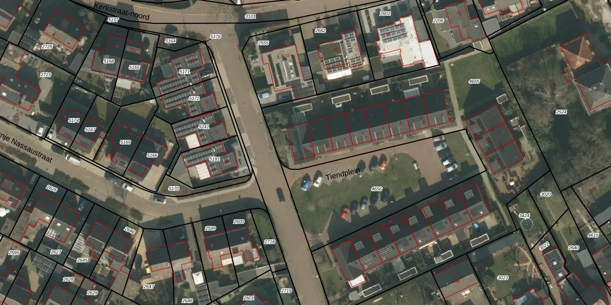 Het perceel waarop Tiendplein 1 staat heeft een oppervlakte van 3717 m². Dit is een zeer groot perceel. De perceeloppervlakte wordt geregistreerd door het Kadaster. Gedetailleerde informatie over de maten van dit perceel kunt u vinden in het rapport Kadastrale kaart met maatvoering van Tiendplein 1.