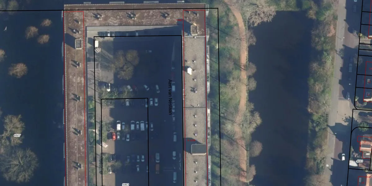 Het perceel waarop Aert van Neslaan 133 staat heeft een oppervlakte van 1,6 ha. Dit is een zeer groot perceel. De perceeloppervlakte wordt geregistreerd door het Kadaster. Gedetailleerde informatie over de maten van dit perceel kunt u vinden in het rapport Kadastrale kaart met maatvoering van Aert van Neslaan 133.