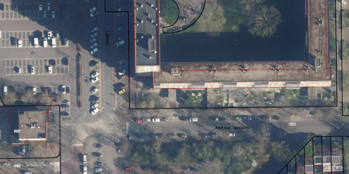 Het perceel waarop Aert van Neslaan 201 staat heeft een oppervlakte van 1,6 ha. Dit is een zeer groot perceel. De perceeloppervlakte wordt geregistreerd door het Kadaster. Gedetailleerde informatie over de maten van dit perceel kunt u vinden in het rapport Kadastrale kaart met maatvoering van Aert van Neslaan 201.