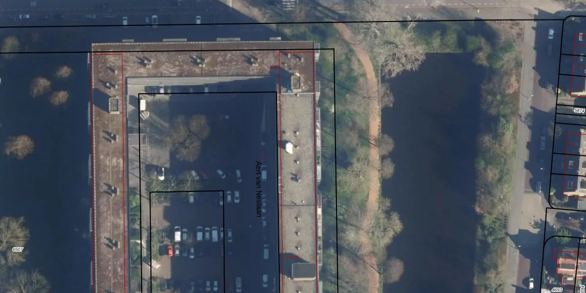 Het perceel waarop Aert van Neslaan 331 staat heeft een oppervlakte van 1,6 ha. Dit is een zeer groot perceel. De perceeloppervlakte wordt geregistreerd door het Kadaster. Gedetailleerde informatie over de maten van dit perceel kunt u vinden in het rapport Kadastrale kaart met maatvoering van Aert van Neslaan 331.