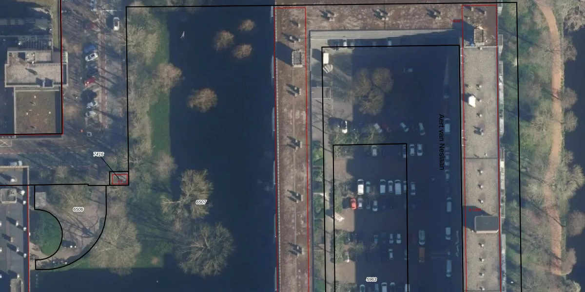 Het perceel waarop Aert van Neslaan 417 staat heeft een oppervlakte van 1,6 ha. Dit is een zeer groot perceel. De perceeloppervlakte wordt geregistreerd door het Kadaster. Gedetailleerde informatie over de maten van dit perceel kunt u vinden in het rapport Kadastrale kaart met maatvoering van Aert van Neslaan 417.