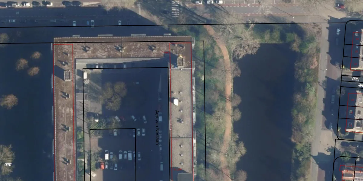 Het perceel waarop Aert van Neslaan 430 staat heeft een oppervlakte van 1,6 ha. Dit is een zeer groot perceel. De perceeloppervlakte wordt geregistreerd door het Kadaster. Gedetailleerde informatie over de maten van dit perceel kunt u vinden in het rapport Kadastrale kaart met maatvoering van Aert van Neslaan 430.