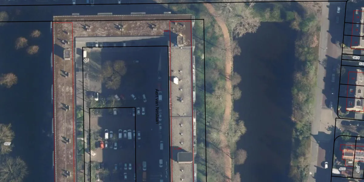 Het perceel waarop Aert van Neslaan 432 staat heeft een oppervlakte van 1,6 ha. Dit is een zeer groot perceel. De perceeloppervlakte wordt geregistreerd door het Kadaster. Gedetailleerde informatie over de maten van dit perceel kunt u vinden in het rapport Kadastrale kaart met maatvoering van Aert van Neslaan 432.