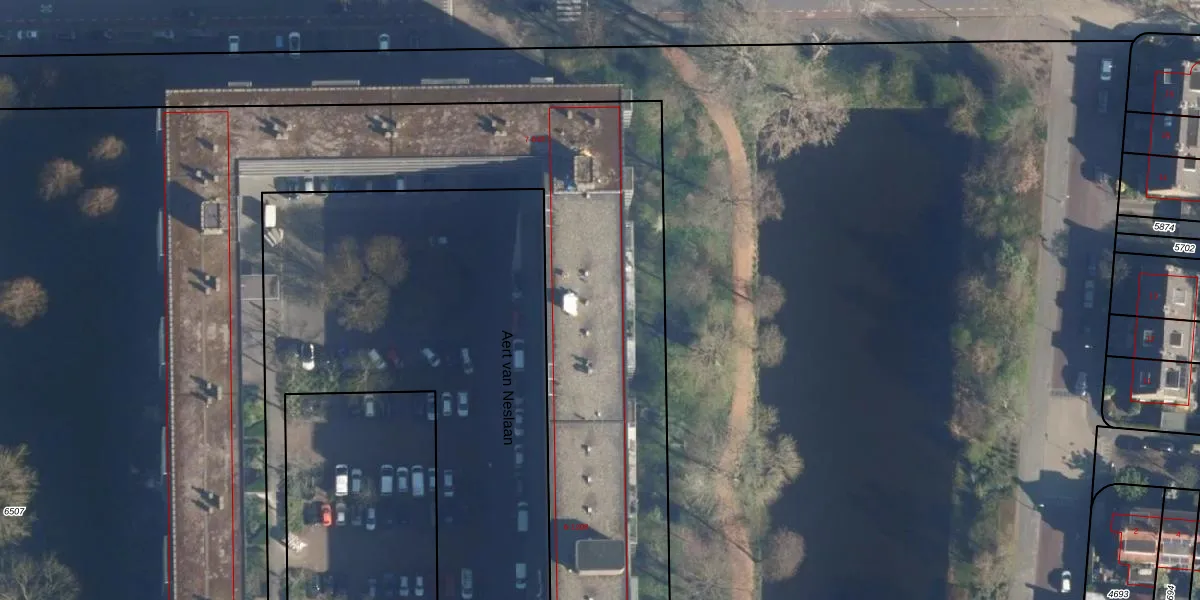 Het perceel waarop Aert van Neslaan 531 staat heeft een oppervlakte van 1,6 ha. Dit is een zeer groot perceel. De perceeloppervlakte wordt geregistreerd door het Kadaster. Gedetailleerde informatie over de maten van dit perceel kunt u vinden in het rapport Kadastrale kaart met maatvoering van Aert van Neslaan 531.