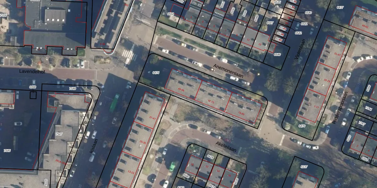 Het perceel waarop Akeleilaan 57 staat heeft een oppervlakte van 1152 m². Dit is een zeer groot perceel. De perceeloppervlakte wordt geregistreerd door het Kadaster. Gedetailleerde informatie over de maten van dit perceel kunt u vinden in het rapport Kadastrale kaart met maatvoering van Akeleilaan 57.
