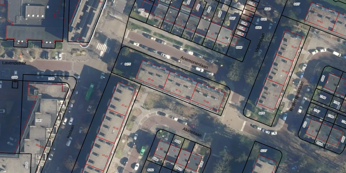 Het perceel waarop Akeleilaan 65 staat heeft een oppervlakte van 1152 m². Dit is een zeer groot perceel. De perceeloppervlakte wordt geregistreerd door het Kadaster. Gedetailleerde informatie over de maten van dit perceel kunt u vinden in het rapport Kadastrale kaart met maatvoering van Akeleilaan 65.