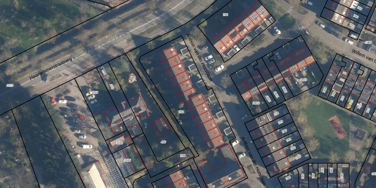 Het perceel waarop Anthon van der Horstlaan 13 staat heeft een oppervlakte van 1962 m². Dit is een zeer groot perceel. De perceeloppervlakte wordt geregistreerd door het Kadaster. Gedetailleerde informatie over de maten van dit perceel kunt u vinden in het rapport Kadastrale kaart met maatvoering van Anthon van der Horstlaan 13.