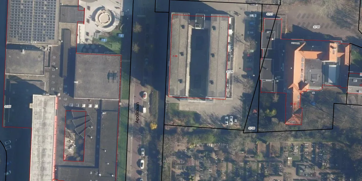 Apollolaan 36 is gelegen op kadastraal perceel OGT00B3724. Deze kadastrale aanduiding is uniek en wordt gebruikt door het Kadaster om eigendomsrechten en andere zakelijke rechten vast te leggen. Het perceel maakt onderdeel uit van de kadastrale gemeente Oegstgeest.