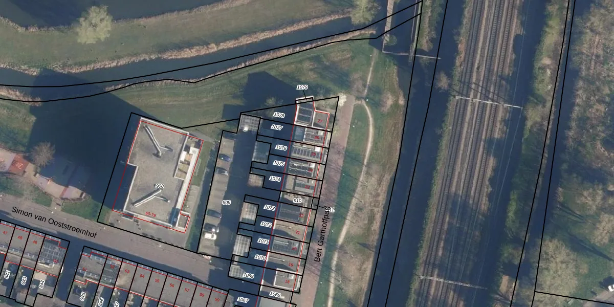 Het adres ligt op het perceel OGT00-D-1076, dat zich in de kadastrale gemeente Oegstgeest bevindt. Het perceel is 111 m² groot. Dat is kleiner dan de gemiddelde perceeloppervlakte in Oegstgeest, dat op 837,6 m² ligt. De grootste perceeloppervlakte in de kadastrale gemeente is 46,3 ha. De kleinste oppervlakte bedraagt 0 m². Er zijn geen andere adressen aanwezig op het perceel. De laatste wijziging in het de Basisregistratie Kadaster (BRK) was op 11-11-2009.