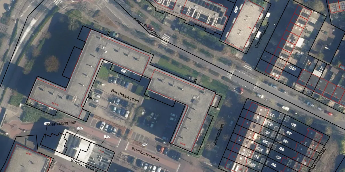 Het perceel waarop Boerhaaveplein 14 staat heeft een oppervlakte van 2664 m². Dit is een zeer groot perceel. De perceeloppervlakte wordt geregistreerd door het Kadaster. Gedetailleerde informatie over de maten van dit perceel kunt u vinden in het rapport Kadastrale kaart met maatvoering van Boerhaaveplein 14.