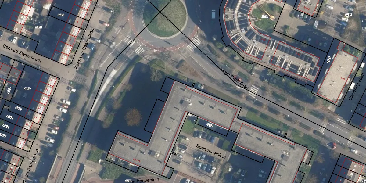 Het perceel waarop Boerhaaveplein 156 staat heeft een oppervlakte van 2664 m². Dit is een zeer groot perceel. De perceeloppervlakte wordt geregistreerd door het Kadaster. Gedetailleerde informatie over de maten van dit perceel kunt u vinden in het rapport Kadastrale kaart met maatvoering van Boerhaaveplein 156.