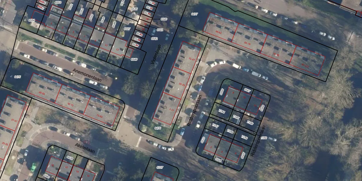 Ridderspoorlaan 21 is gelegen op kadastraal perceel OGT00C6476. Deze kadastrale aanduiding is uniek en wordt gebruikt door het Kadaster om eigendomsrechten en andere zakelijke rechten vast te leggen. Het perceel maakt onderdeel uit van de kadastrale gemeente Oegstgeest.