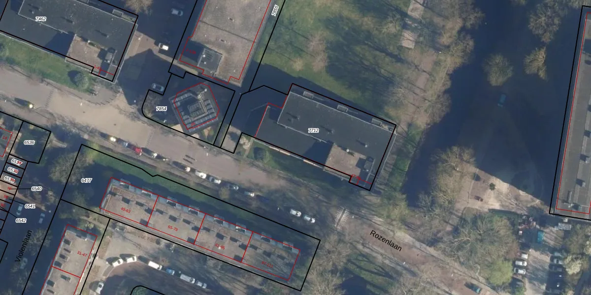 Rozenlaan 65 is gelegen op kadastraal perceel OGT00C7712. Deze kadastrale aanduiding is uniek en wordt gebruikt door het Kadaster om eigendomsrechten en andere zakelijke rechten vast te leggen. Het perceel maakt onderdeel uit van de kadastrale gemeente Oegstgeest.