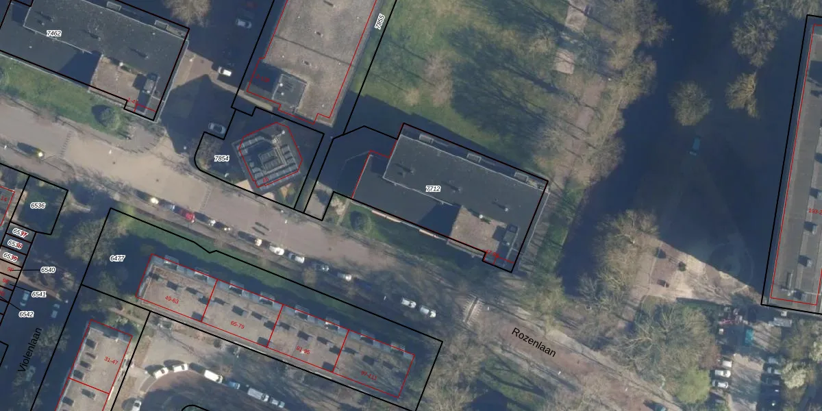 Het perceel waarop Rozenlaan 77 staat heeft een oppervlakte van 1115 m². Dit is een zeer groot perceel. De perceeloppervlakte wordt geregistreerd door het Kadaster. Gedetailleerde informatie over de maten van dit perceel kunt u vinden in het rapport Kadastrale kaart met maatvoering van Rozenlaan 77.