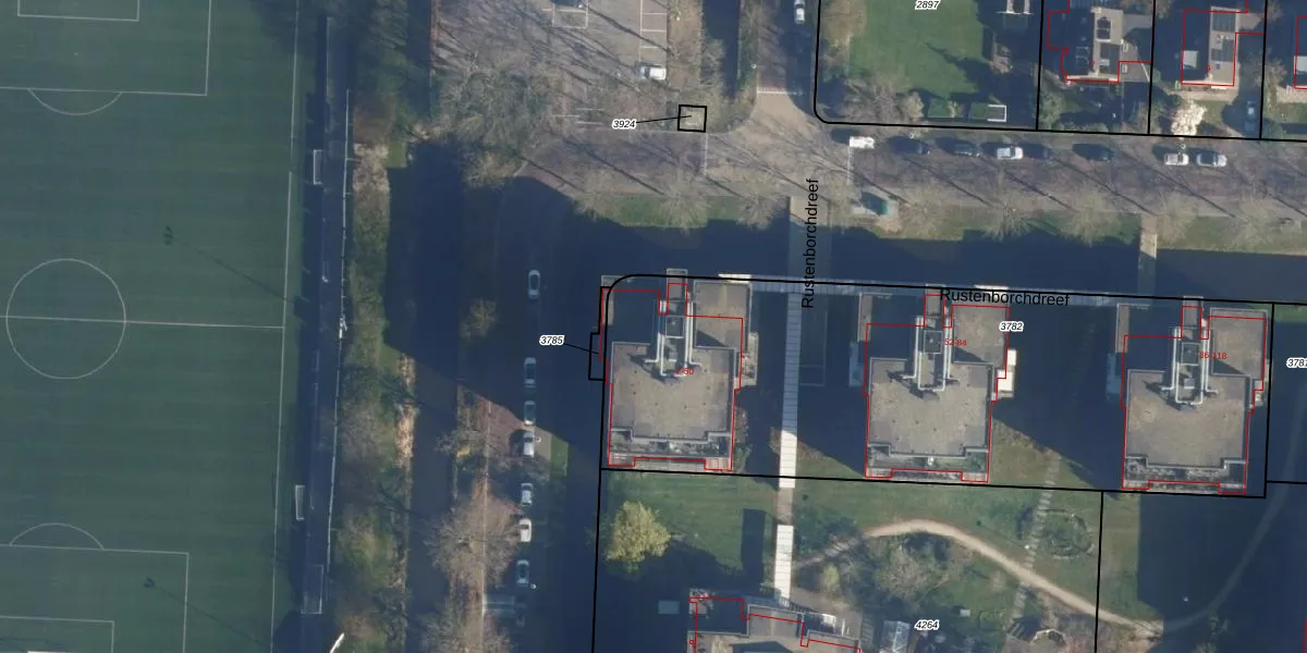 Rustenborchdreef 6 is gelegen op kadastraal perceel OGT00B3782. Deze kadastrale aanduiding is uniek en wordt gebruikt door het Kadaster om eigendomsrechten en andere zakelijke rechten vast te leggen. Het perceel maakt onderdeel uit van de kadastrale gemeente Oegstgeest.