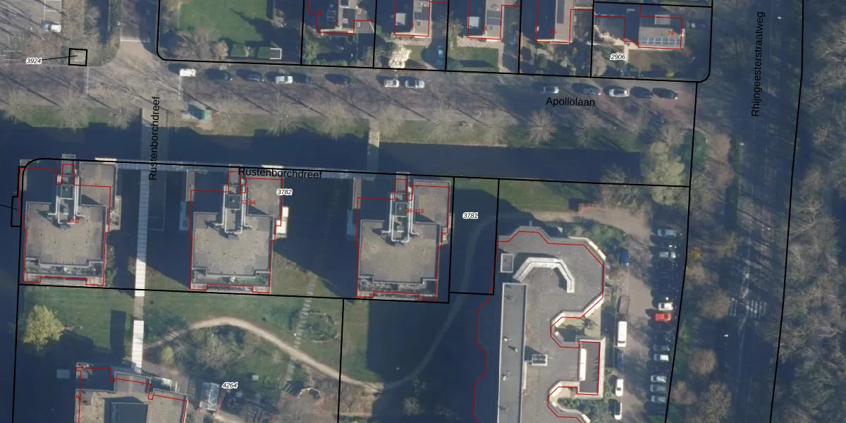 Het perceel waarop Rustenborchdreef 92 staat heeft een oppervlakte van 3042 m². Dit is een zeer groot perceel. De perceeloppervlakte wordt geregistreerd door het Kadaster. Gedetailleerde informatie over de maten van dit perceel kunt u vinden in het rapport Kadastrale kaart met maatvoering van Rustenborchdreef 92.