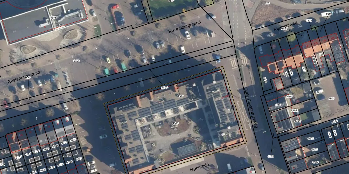 Het perceel waarop Rustenburgerpad 5 staat heeft een oppervlakte van 2955 m². Dit is een zeer groot perceel. De perceeloppervlakte wordt geregistreerd door het Kadaster. Gedetailleerde informatie over de maten van dit perceel kunt u vinden in het rapport Kadastrale kaart met maatvoering van Rustenburgerpad 5.