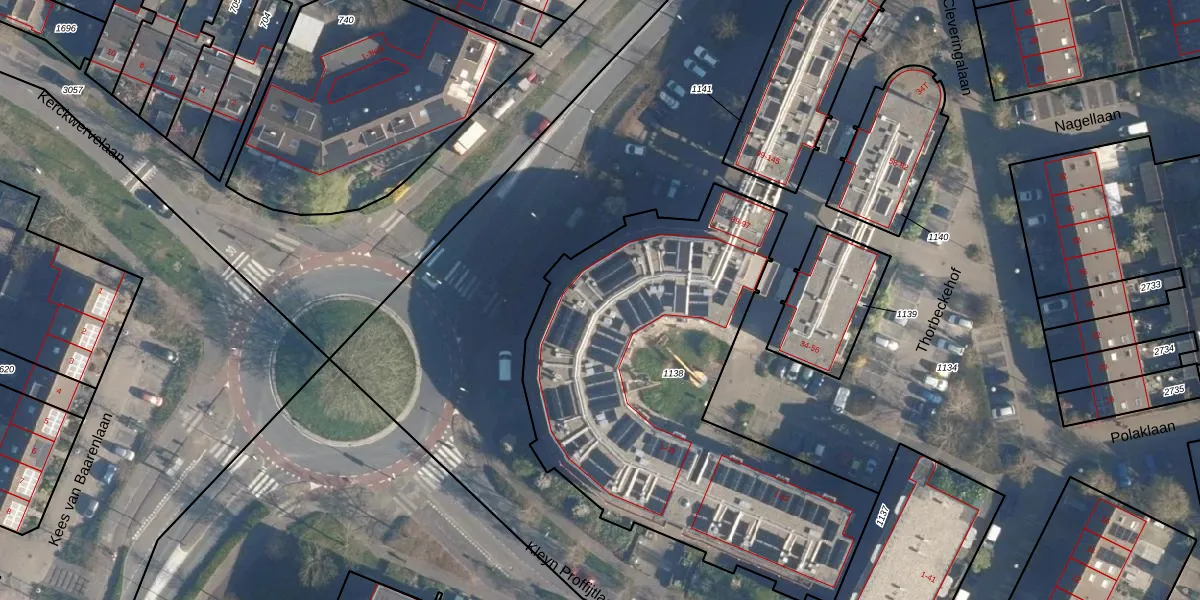 Het perceel waarop Thorbeckehof 21 staat heeft een oppervlakte van 2158 m². Dit is een zeer groot perceel. De perceeloppervlakte wordt geregistreerd door het Kadaster. Gedetailleerde informatie over de maten van dit perceel kunt u vinden in het rapport Kadastrale kaart met maatvoering van Thorbeckehof 21.