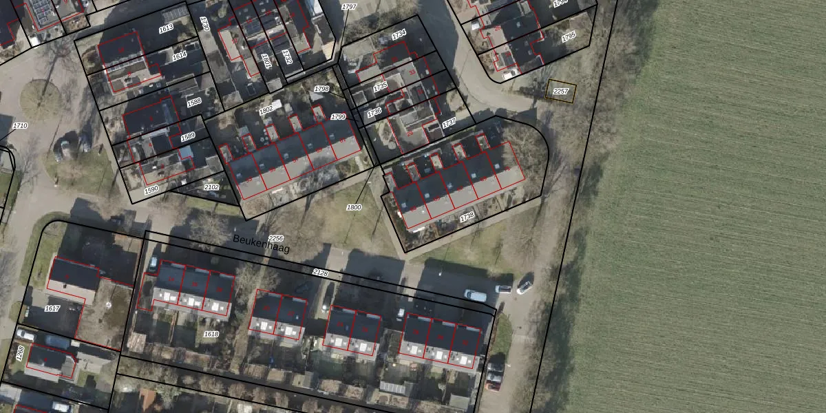 Het perceel waarop Beukenhaag 63 staat heeft een oppervlakte van 845 m². Dit is een groot perceel. De perceeloppervlakte wordt geregistreerd door het Kadaster. Gedetailleerde informatie over de maten van dit perceel kunt u vinden in het rapport Kadastrale kaart met maatvoering van Beukenhaag 63.