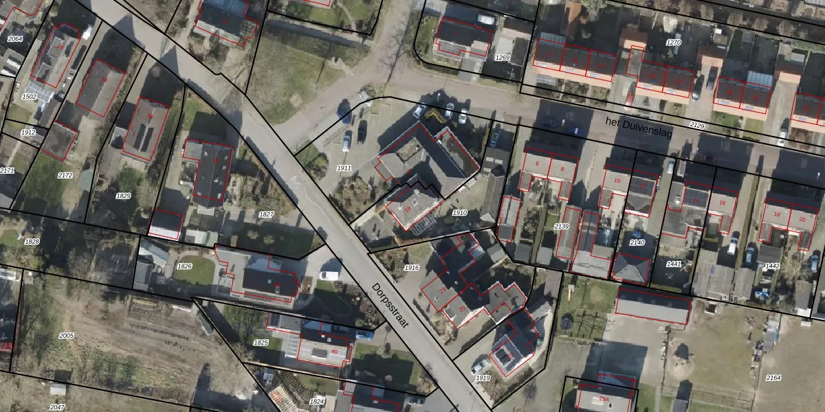 Het perceel waarop Dorpsstraat 19 staat heeft een oppervlakte van 520 m². Dit is een groot perceel. De perceeloppervlakte wordt geregistreerd door het Kadaster. Gedetailleerde informatie over de maten van dit perceel kunt u vinden in het rapport Kadastrale kaart met maatvoering van Dorpsstraat 19.