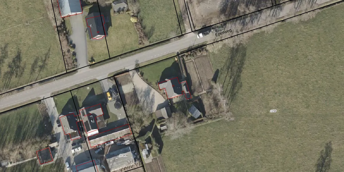 Het perceel waarop Eperweg 55 staat heeft een oppervlakte van 1,7 ha. Dit is een zeer groot perceel. De perceeloppervlakte wordt geregistreerd door het Kadaster. Gedetailleerde informatie over de maten van dit perceel kunt u vinden in het rapport Kadastrale kaart met maatvoering van Eperweg 55.