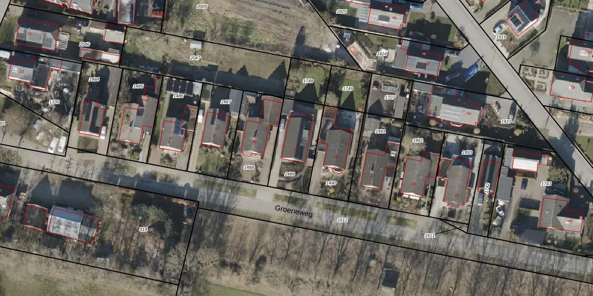 Het perceel waarop Groeneweg 13 staat heeft een oppervlakte van 421 m². Dit is een groot perceel. De perceeloppervlakte wordt geregistreerd door het Kadaster. Gedetailleerde informatie over de maten van dit perceel kunt u vinden in het rapport Kadastrale kaart met maatvoering van Groeneweg 13.