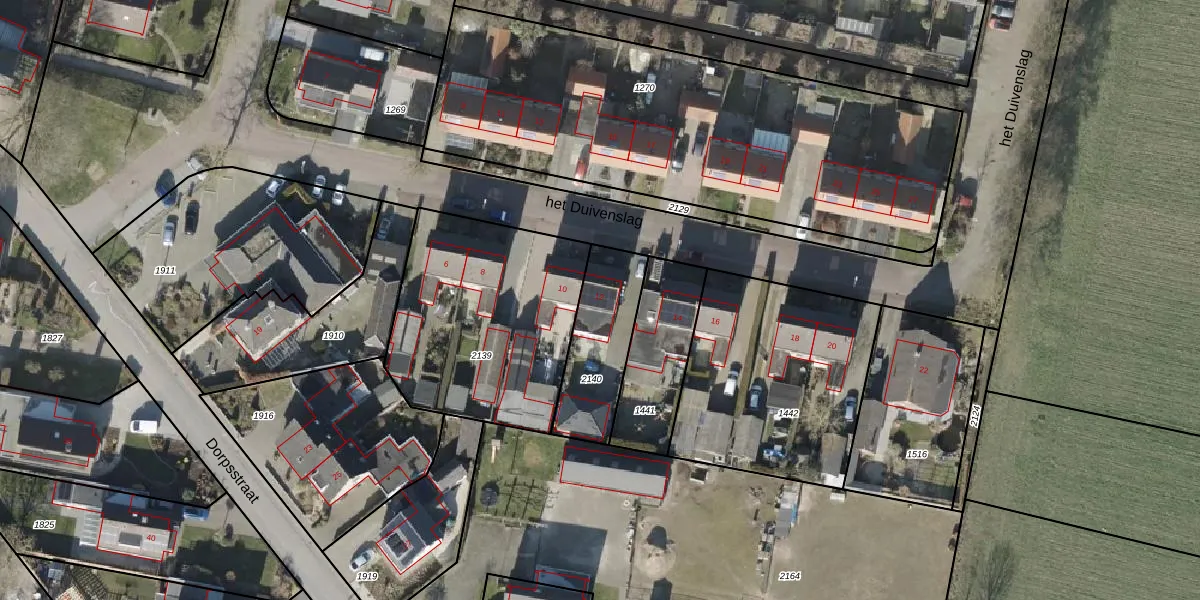 het Duivenslag 12 is gelegen op kadastraal perceel EPE00E2140. Deze kadastrale aanduiding is uniek en wordt gebruikt door het Kadaster om eigendomsrechten en andere zakelijke rechten vast te leggen. Het perceel maakt onderdeel uit van de kadastrale gemeente Epe en Oene.